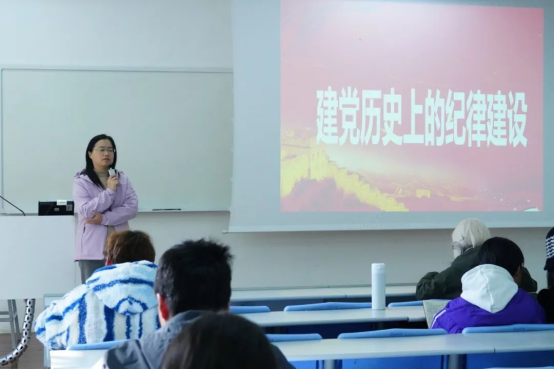 经济学院党委副书记徐丽玲老师讲授了《建党历史上的纪律建设》。她强调,从严治党贯穿于党的整个发展历程中,习近平总书记在党的二十大报告中再次指出“坚持以严的基调强化正风肃纪”,入党积极分子们要切实将党的纪律要求内化为精神追求,外化为行动自觉。