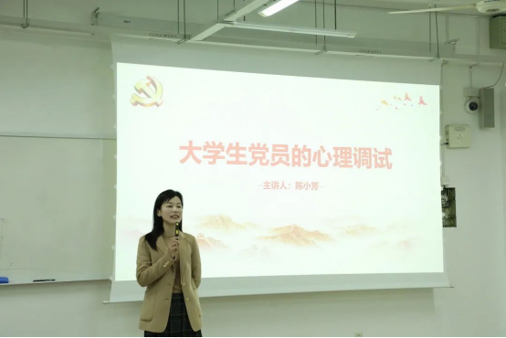管理学院党委副书记陈小芳老师聚焦《大学生党员心理调适》主题,分析了大学生党员的心理状况,寄语入党积极分子们关注自我的心理健康水平,有意识地提升抗压能力,理性看待并正确面对困难,充分发挥自身潜力,最终实现健康成长全面发展。