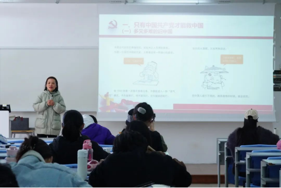 法学院党委副书记胡哲老师以《中国共产党成立之初的历史背景和红船精神》为主题,深情讲述了党的光辉奋斗历程,阐述了只有中国共产党才能救中国的真理。她运用互动式教学,进一步增强了学员们的课堂参与度,引领同学们深入体悟红船精神的思想内涵与时代价值。