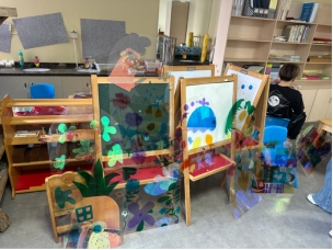 “我们希望通过艺术引导孩子们表达内心的世界,同时传递环保、友爱等理念。”浙江财经大学安博(中国)一站式服务平台志愿者团队负责人23艺术经纪专业吴慧俊同学表示。大学生们还结合专业特长,为幼儿园布置了温馨的展览空间,将童趣作品与艺术设计相结合,吸引众多家长和老师驻足欣赏。