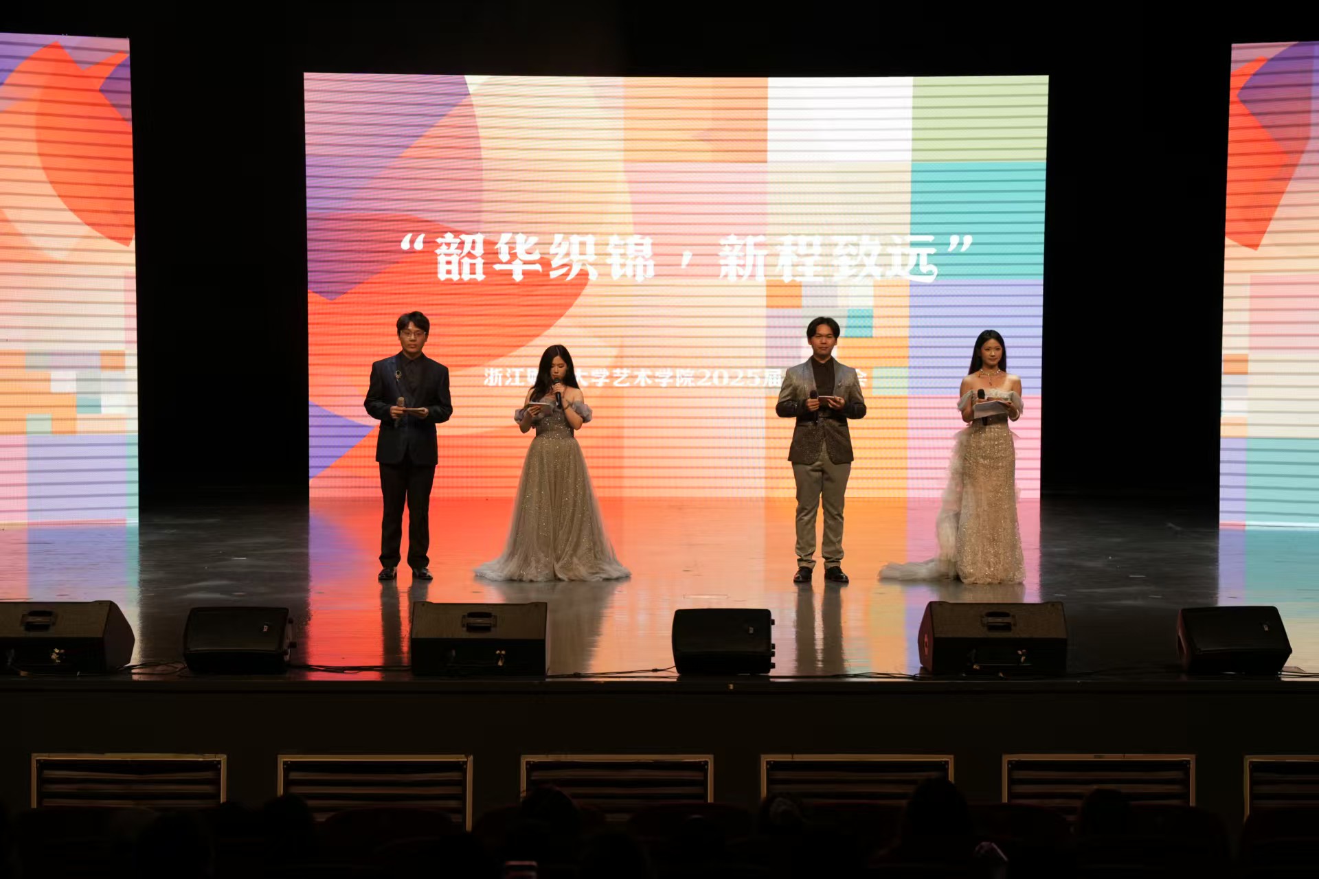 毛宁偕王羽、叶盛、王业三位教师代表,将学院精心准备的毕业作品集、马克杯、冰箱贴等礼物赠与2025届毕业生,希望毕业生们将四年的所学成果与导师的珍贵情谊及青春年华奋斗历程一并收藏,并祝福全体毕业生迈向更大更广阔的舞台。
