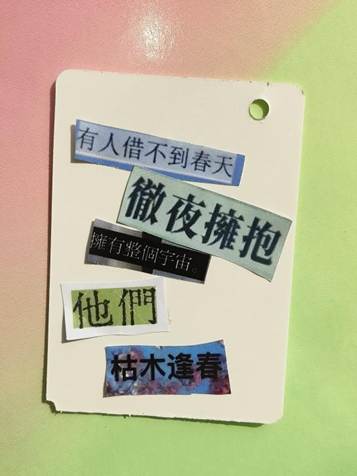 活动现场,工作人员们准备了一张张彩色的、春天的素材,同学们从中挑选自己想要的不同颜色或形式的文字,将它们编织成属于自己的春日诗篇。