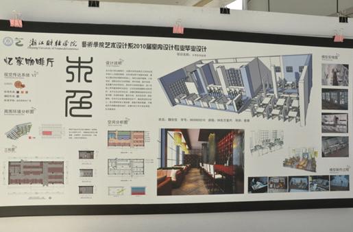 从西大门进入校园,文化长廊可以看到百余幅绘画作品和折纸作品。橱窗里的多为立构中的折纸作品,而大道两旁的则是绘画作品,其画或抽象或写实,有的巧夺天工,有的古色古香,吸引了许多师生的注目,纷纷驻足观赏,细细品味。中心花坛外围展示的则是09级学生的立体构成作品。其作品风格独特,取材丰富,作品体现了学生新颖的思维,极大地彰显了我院学生的艺术魅力和艺术造诣!介于B、C楼间的摄影作品或惊艳或朴素,或热闹或孤寂。作品折射出的世界别有一番风味。文化中心展出的2010届毕业生作品展也体现着我们未来伟大设计师的智慧!