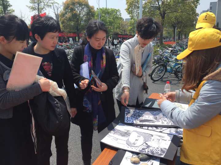 学生党员们在活动现场设立义卖区,将自己手绘制作的作品集中到一起,以“集大成者,金声玉振”为口号进行现场义卖。这些学生党员的手绘作品美观大方,创意感十足,吸引了不少师生的眼球,老师和同学们纷纷购买,通过实际行动奉献爱心,现场义卖款项将用于我校书海助学基金对于困难学子的资助。