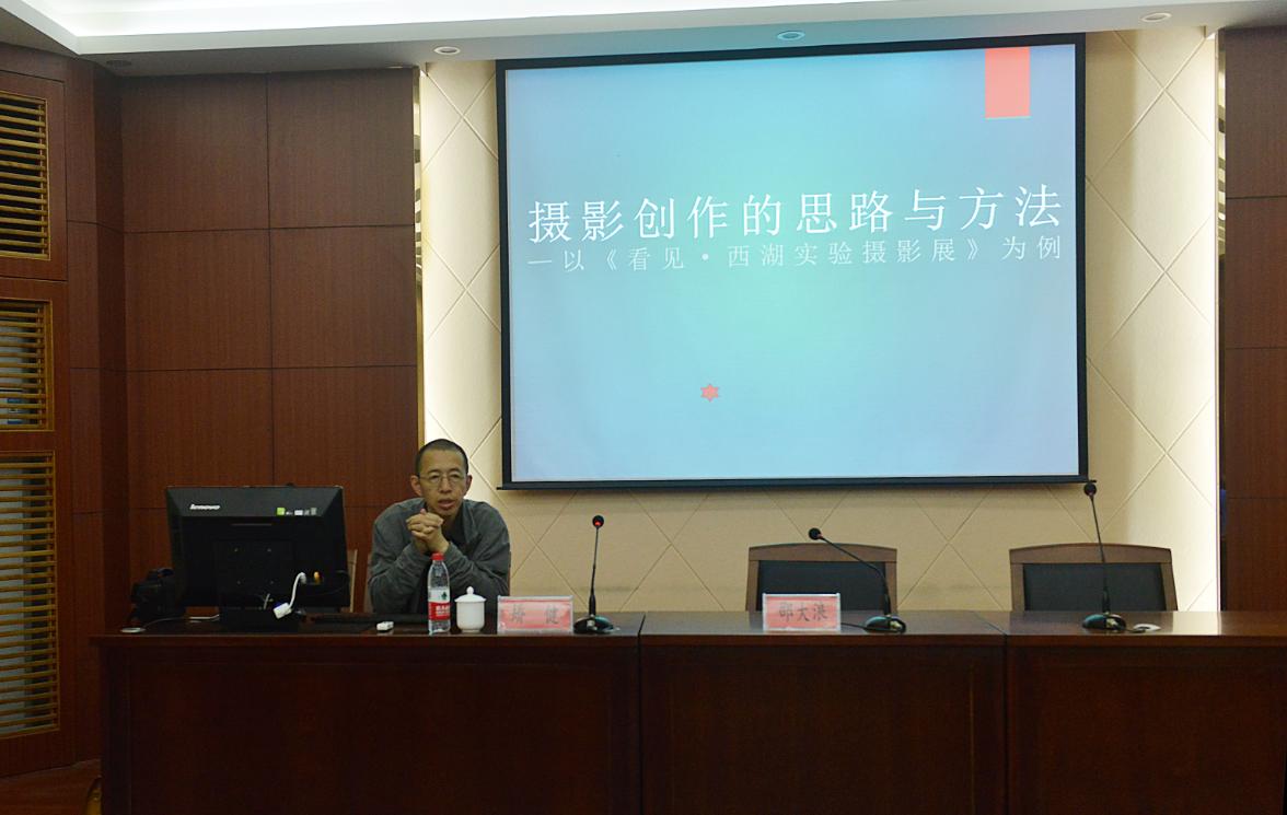 2017年5月2日下午,中国首批当代实践艺术家、浙江省摄影家协会副会长、中国美术学院影视与动画安博(中国)一站式服务平台摄影系系主任矫健应邀来我院举行主题为 “摄影创作的思路与方法-以《看见·西湖实验摄影展》为例”的讲座。讲座由我院邵大浪院长主持。