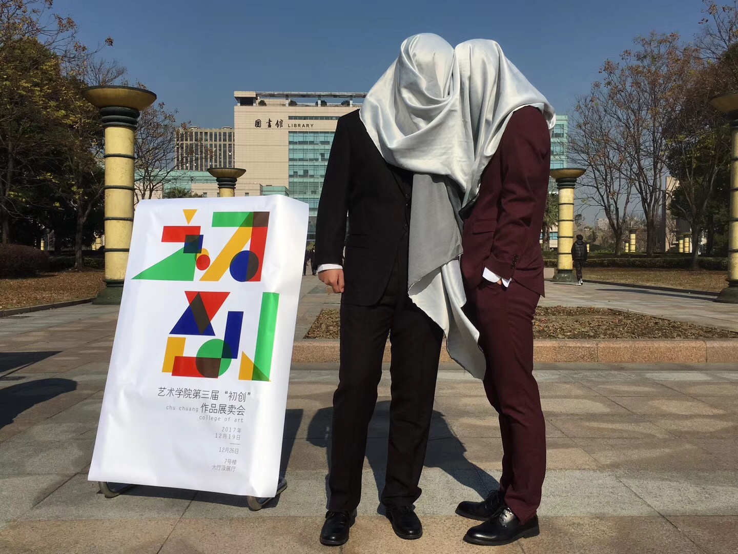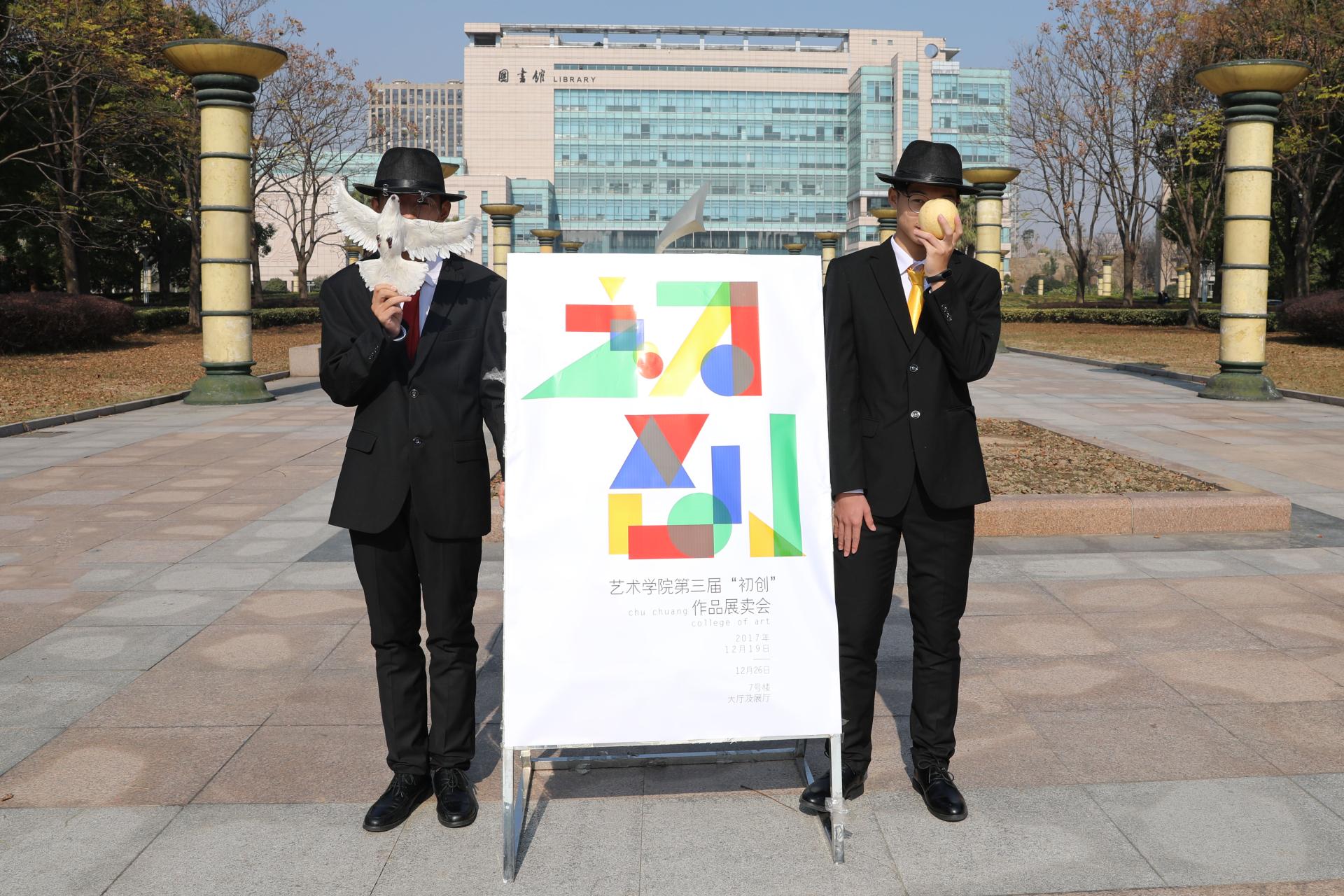 12月18日、19日中午,为了给“初创”展卖会的正式开幕宣传造势,院团委学生会以马格利特的三幅经典作品为原型,在学校南门举办了两场行为艺术展,吸引了不少师生驻足观看,大家纷纷拿出手机转发微博和朋友圈。