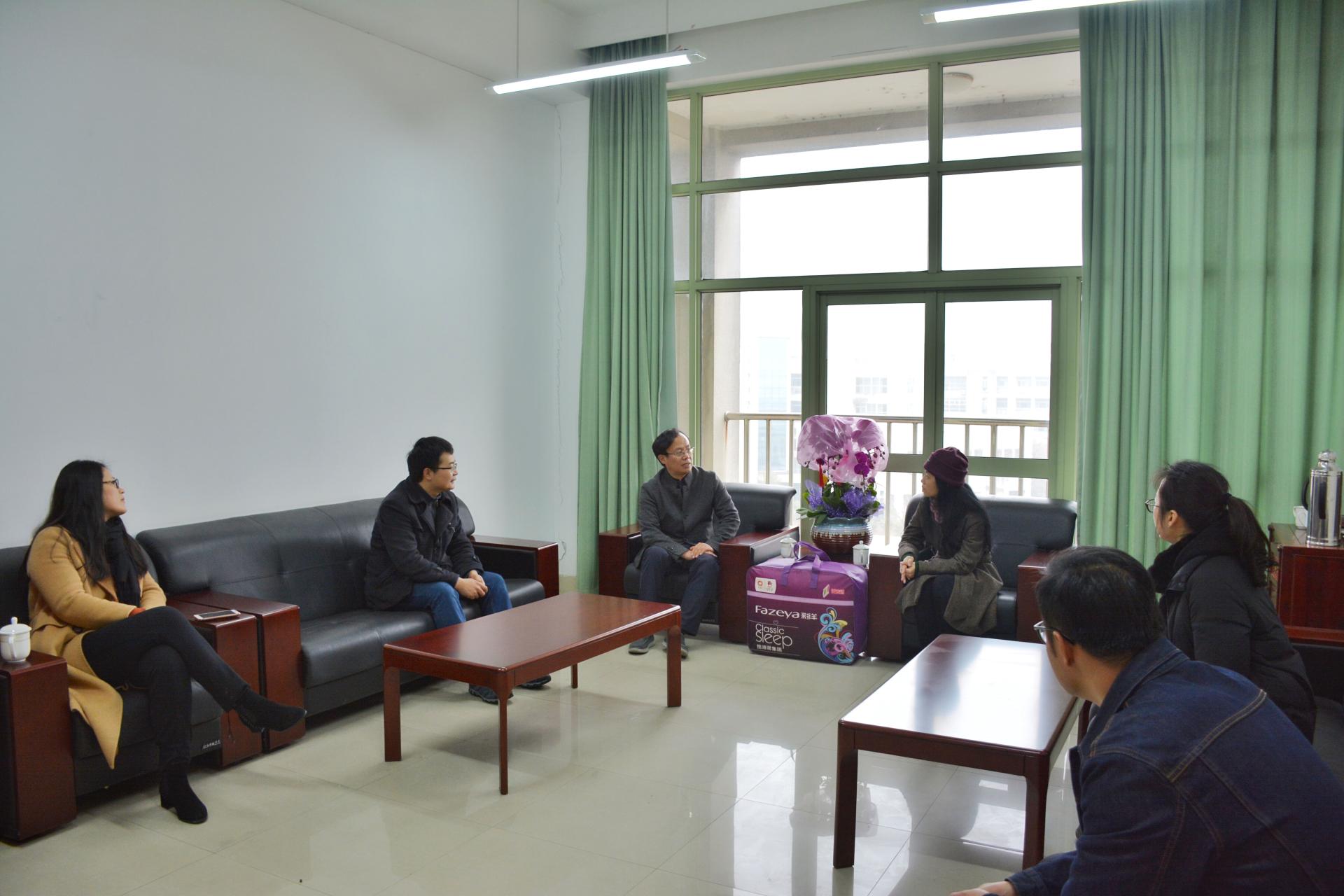 1月19日下午,在2018年寒假即将来临之际,黄建新副校长亲临我院慰问美术学专业新晋教授罗易扉老师,并进行了座谈。院党委副书记方咏、人事处副处长胡国庭、工会副主席王晨曦、学生处办公室主任汪风易参加了座谈。