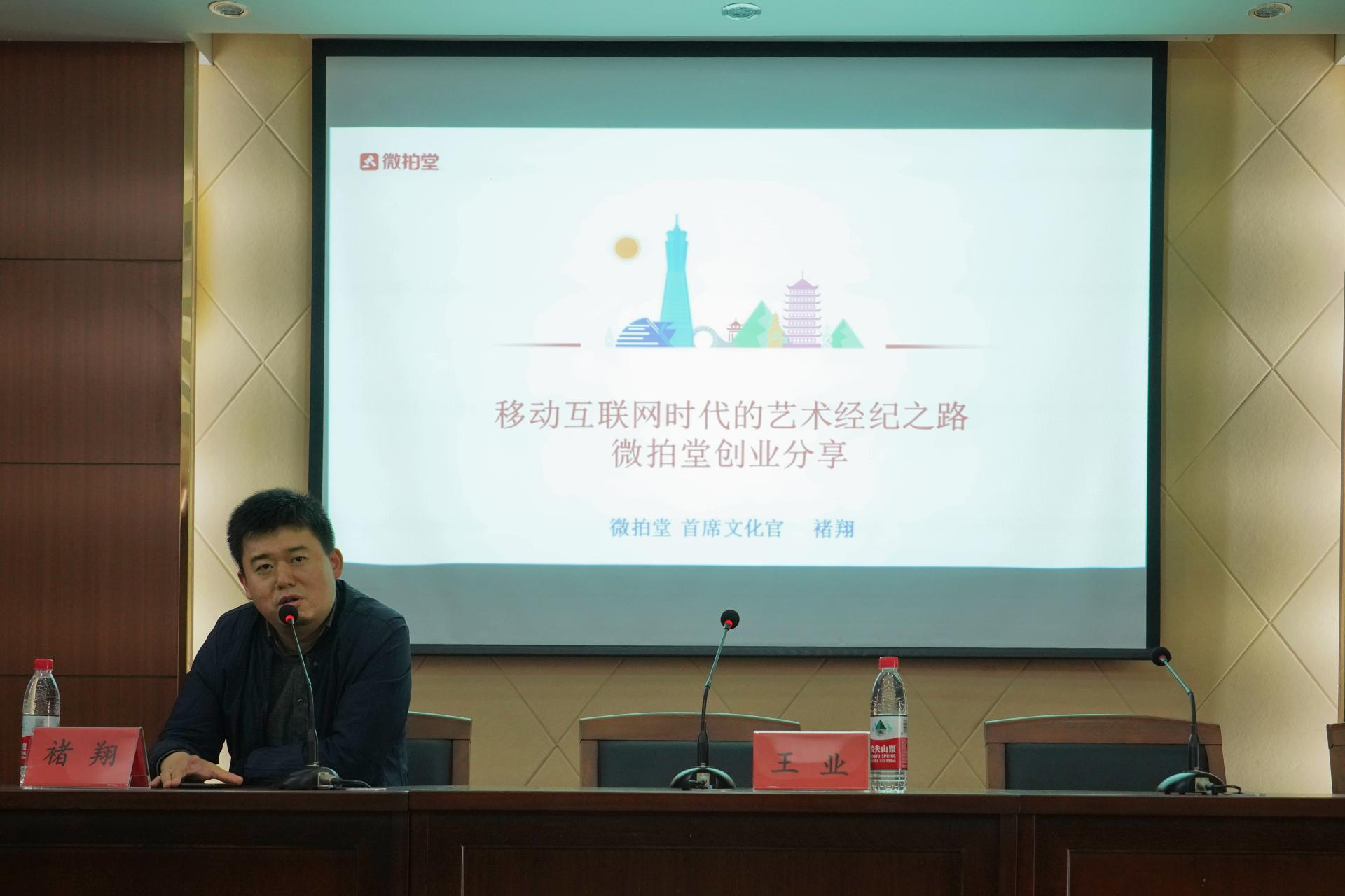 4月3日下午,褚翔先生应邀来我院作主题“移动互联网时代的艺术经纪之路—微拍堂创业分享”的讲座。讲座由王业老师主持,美术学系本科生参加此次讲座。