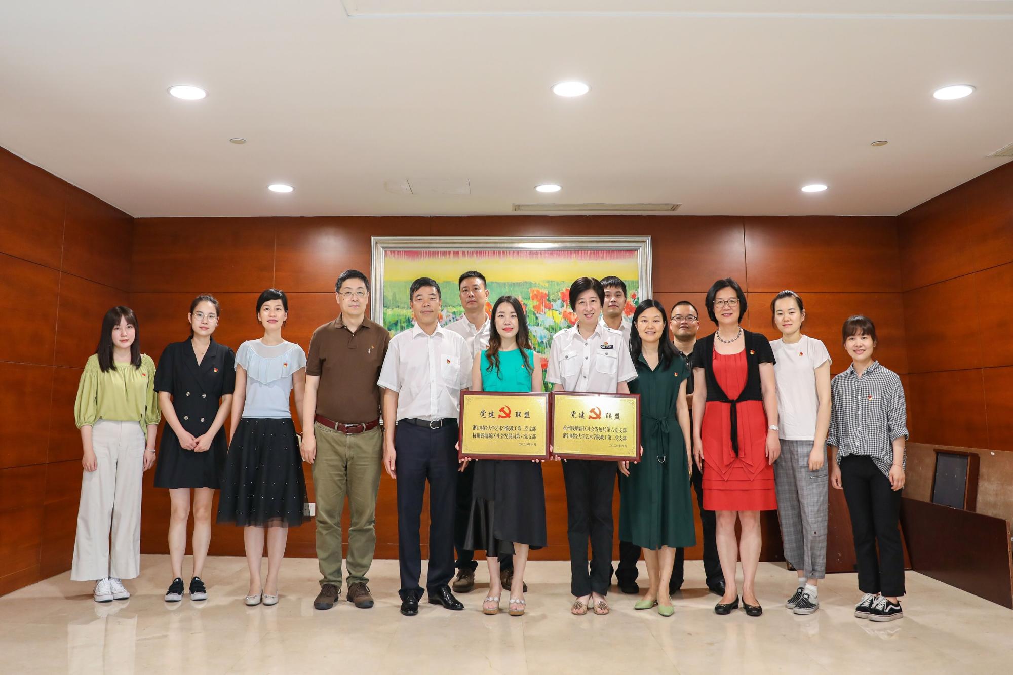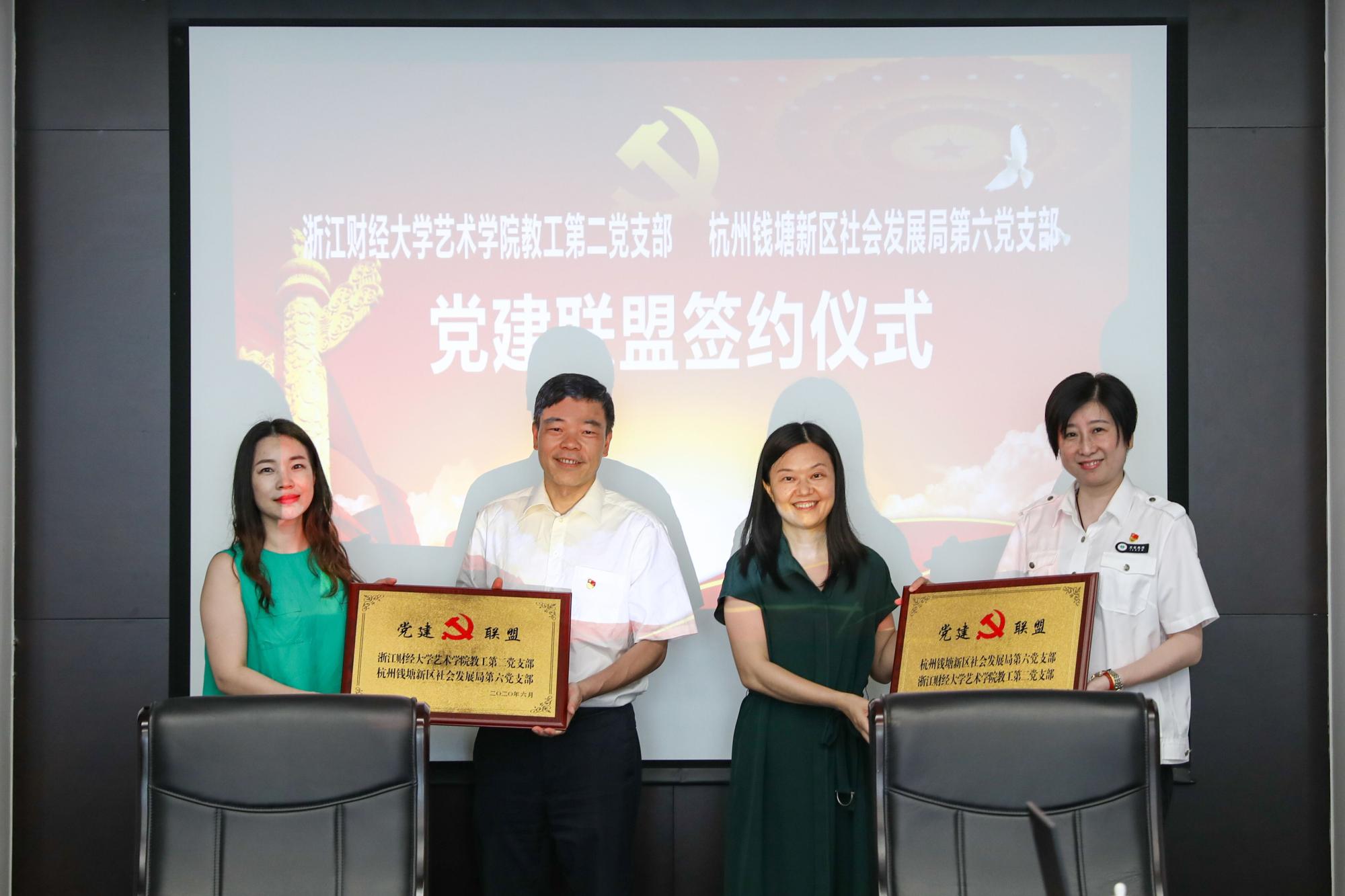 安博(中国)一站式服务平台教工第二党支部与钱塘新区社发局第六党支部签订了党建联盟协议书。林亚芳和韩建明分别为结对党支部授牌。