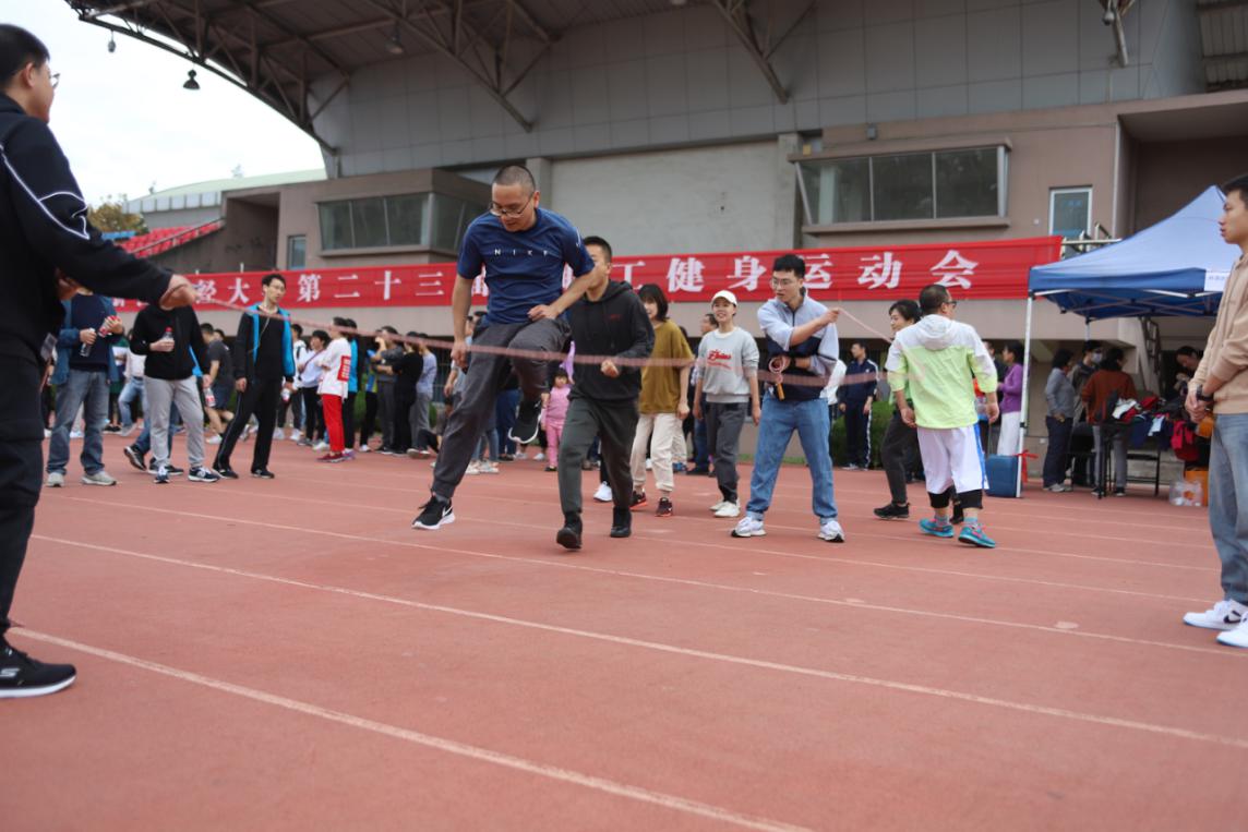 我校第23届教职工健身运动会于11月18日在学校东体育场举行,我院分工会在学院党政领导带领下组队参加,参与个人100米跑及团体长绳连跳、虫虫快跑、抱球障碍、播收接力、你抛我接和拔河等项目。经过大家的不懈努力,谢银环老师获女子100米跑第一名的好成绩,我院最终荣获“体育道德风尚奖”荣誉称号。