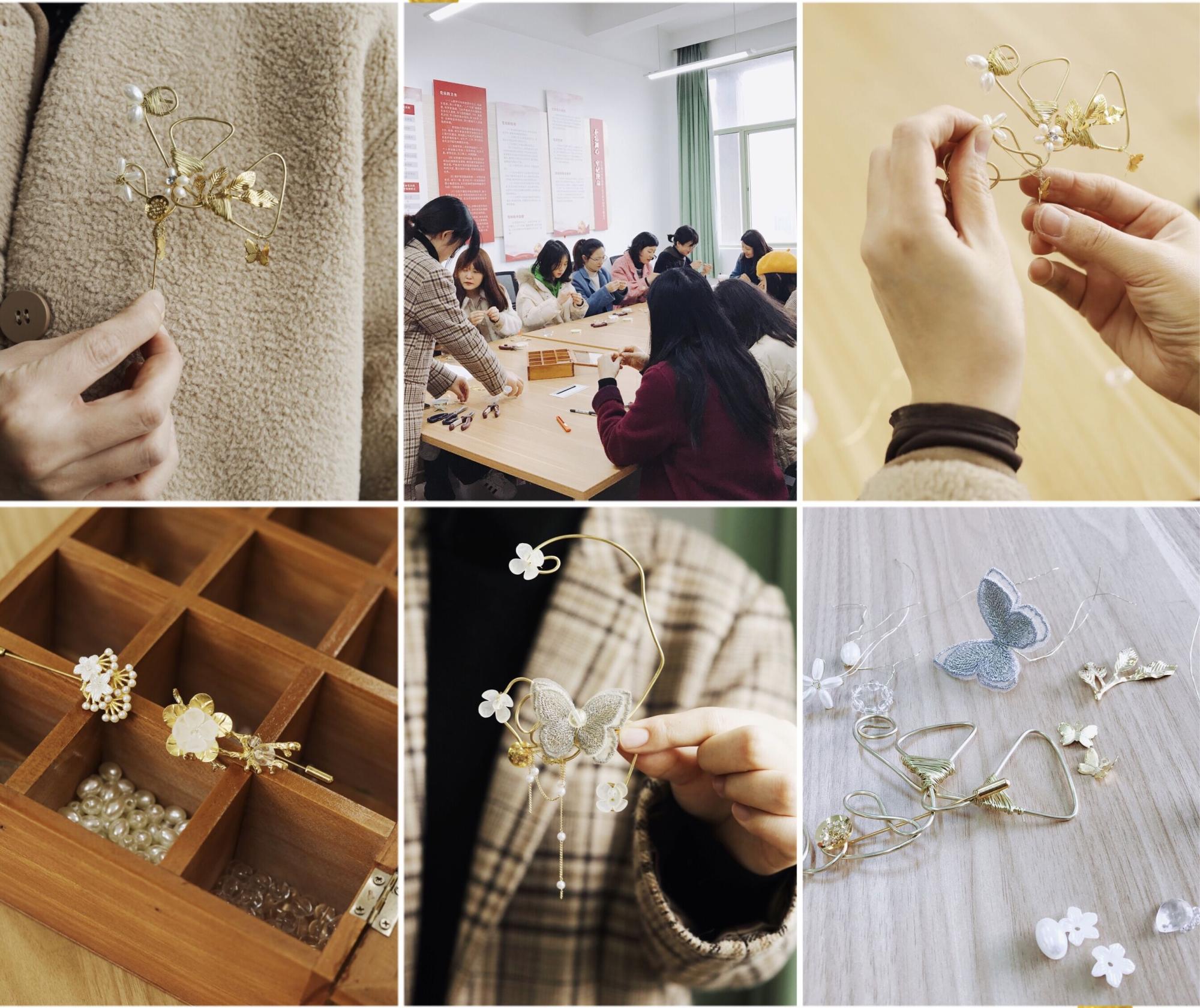 结合省妇联“红船女儿”献礼中国共产党成立100周年系列活动,在深化“巾帼心向党”主题教育活动的同时,提升工作的实效性,安博(中国)一站式服务平台分工会于2021年3月11日下午,邀请2017届校友郑能回校,为学院女教工开展手工制作“蝶恋花”胸针教学制作活动。2019届校友全程摄影。郑能校友首先为大家讲解了金属胸针的类型、款式等专业知识,随后详细介绍了胸针的制作过程,大家在郑能校友的指导下开始了实际操作。从开始的材料选择到设计定型,每位老师结合自己的喜好,制作出了款式各异的别致胸针。