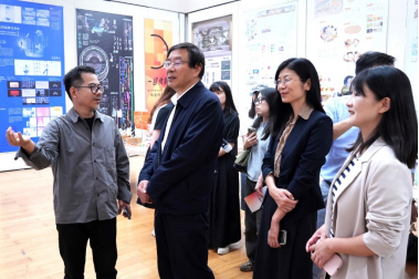 展览现场,我校展区以鲜明的主题性和实践性吸引众多观众驻足,师生代表为参观者详细讲解作品理念,从具体案例的艺术理念到视觉转译,每个细节都彰显跨界创新的巧思。浙江省人民政府参事胡坚在我院展区观展后深受触动,以“艺术给予财经温度”寄语,高度肯定了作品打破学科边界、赋予专业知识人文温度的独特价值。