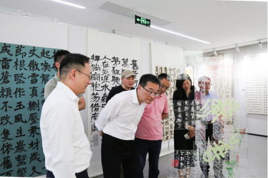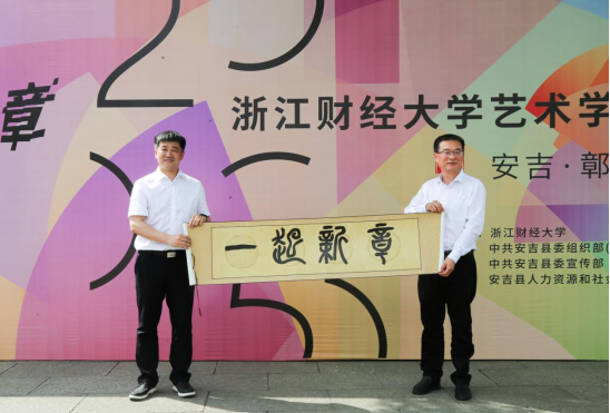 现场,校党委副书记徐晓东,安吉县政府党组成员、副县长徐晟共启“一起新章”手卷,宣布展览开幕。