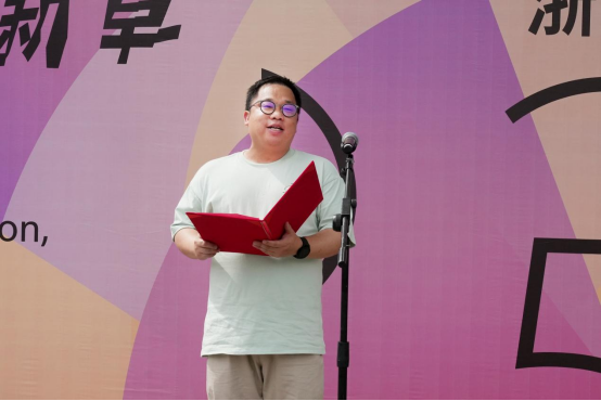 开幕式以独具匠心的"泥金大扇"签到拉开帷幕。彰吴镇党委书记梅本炜致辞,表达了对各方来宾的热烈欢迎和衷心感谢。他表示,多年来鄣吴镇始终致力于传承和弘扬昌硕文化,此次校地共创毕业作品展为昌硕文化注入了新的活力,希望未来双方能进一步加强在文化艺术领域的交流,共同挖掘和传承昌硕文化,培养更多优秀的艺术人才。