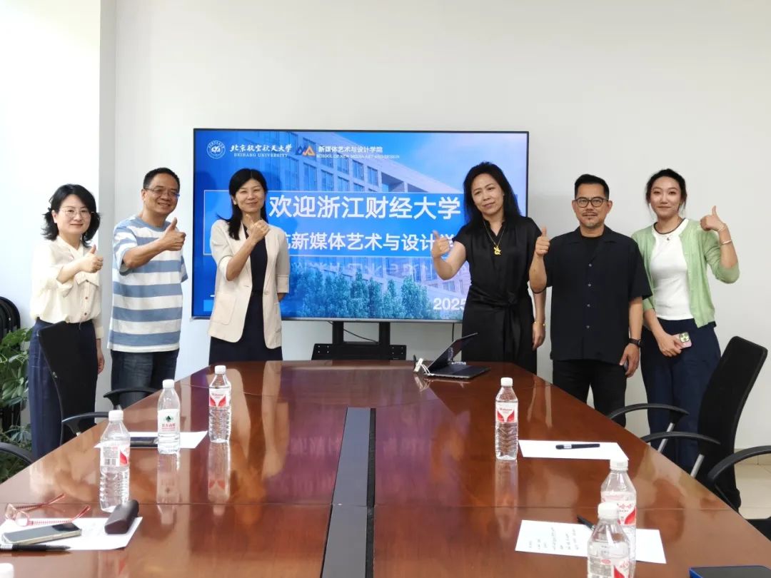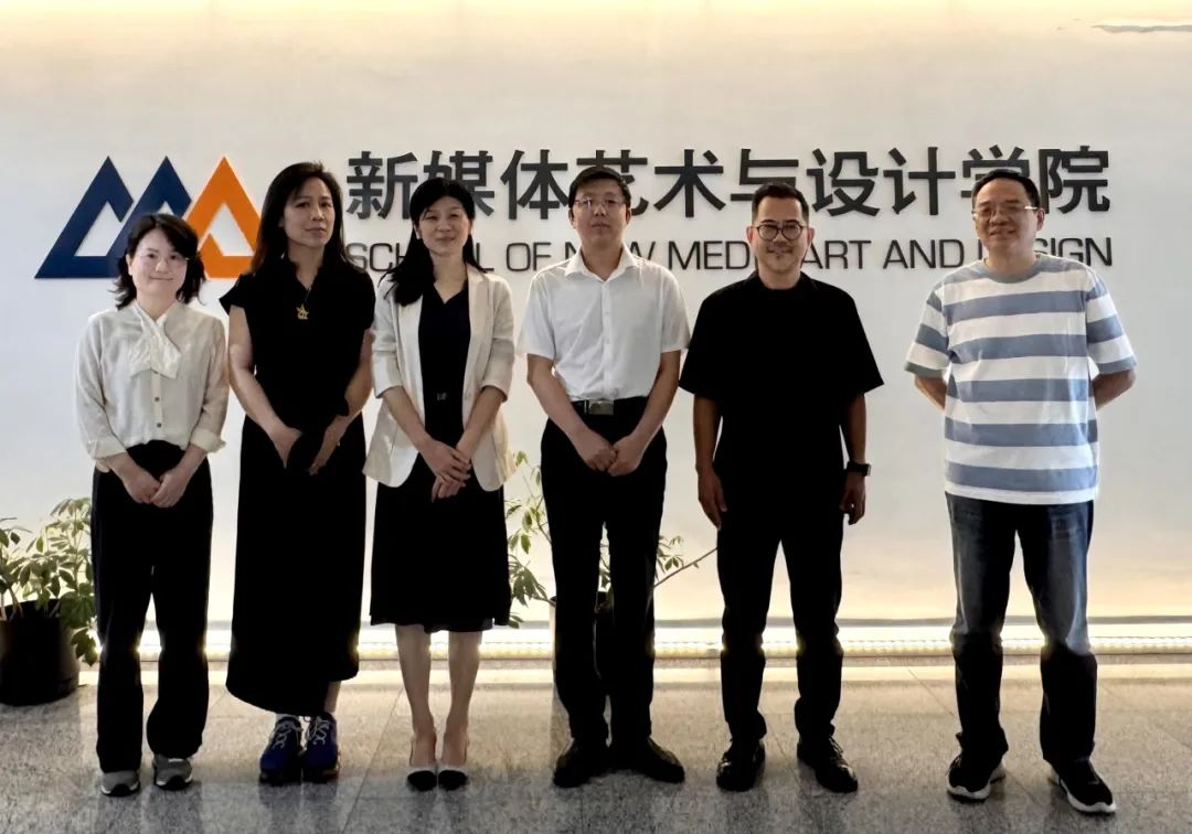 考察团一行前往中央财经大学文化与传媒学院进行学习交流。中央财经大学文化与传媒学院院长朱飞教授、副院长戴俊骋教授、艺术系主任张冰教授及艺术系戴砚亮副教授等出席交流活动。