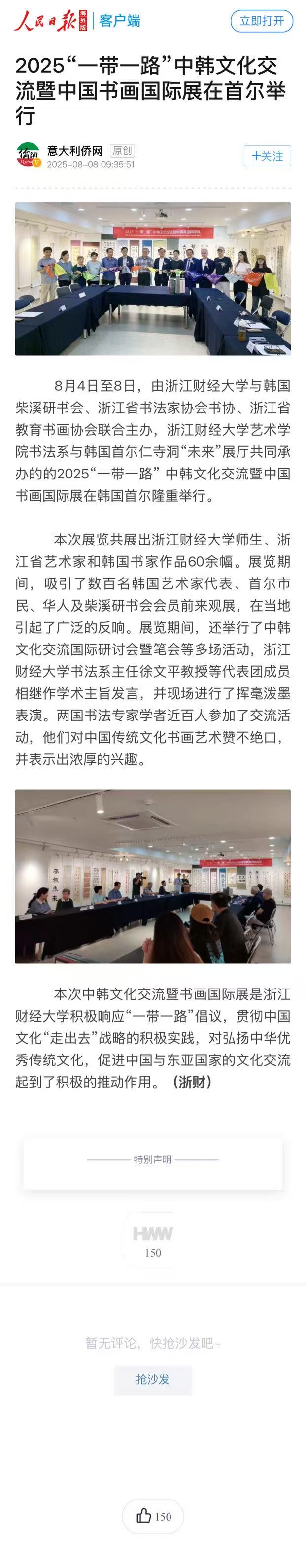 人民日报 2025“一带一路”中韩文化交流暨中国书画国际展在首尔举行